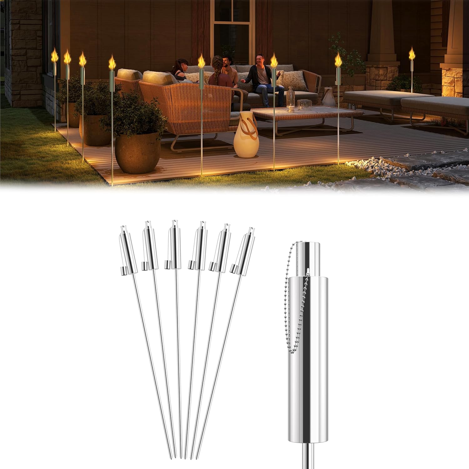 HENGMEI Gartenfackel 30er Fackeln für Garten Laternen, Ölfackeln aus Edelstahl Lampenöl für draußen deko Gartenparty, Weg, Hinterhöfe, Rasen Beleuchtung