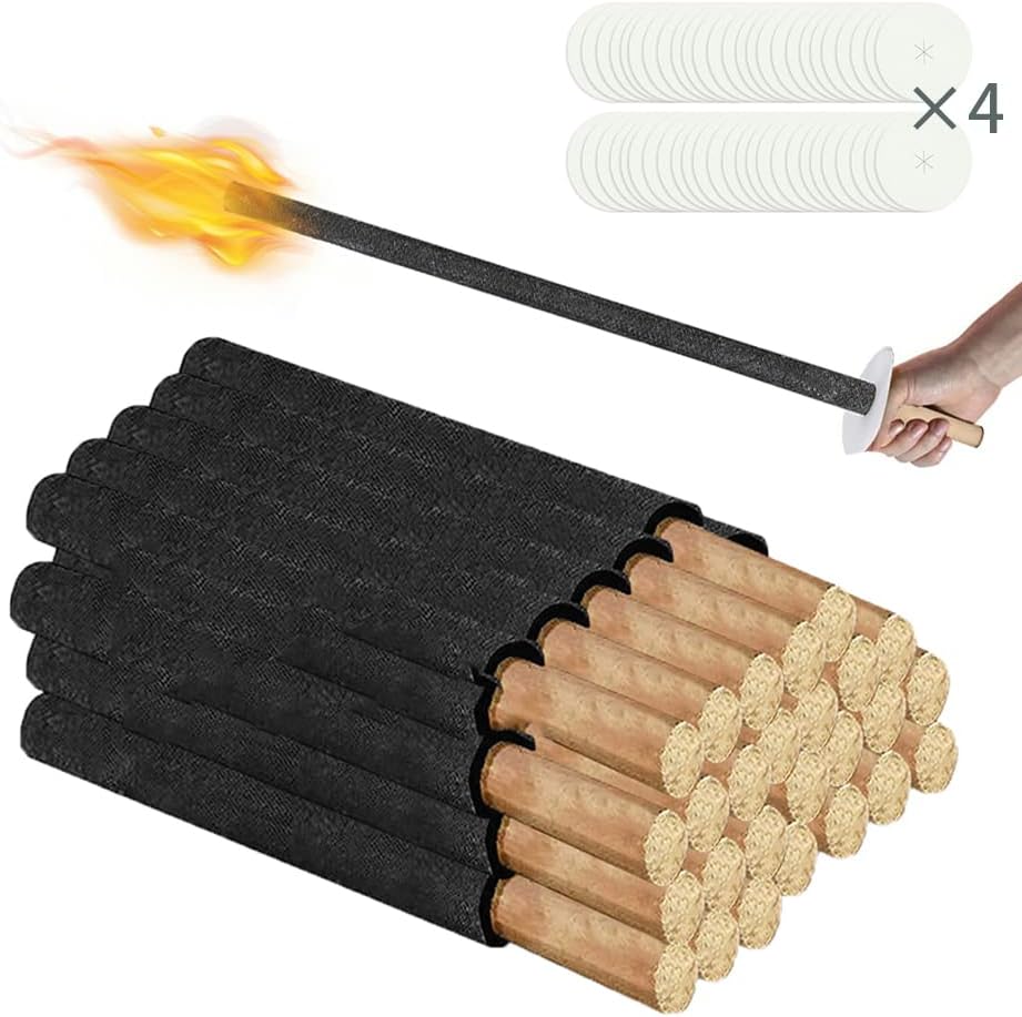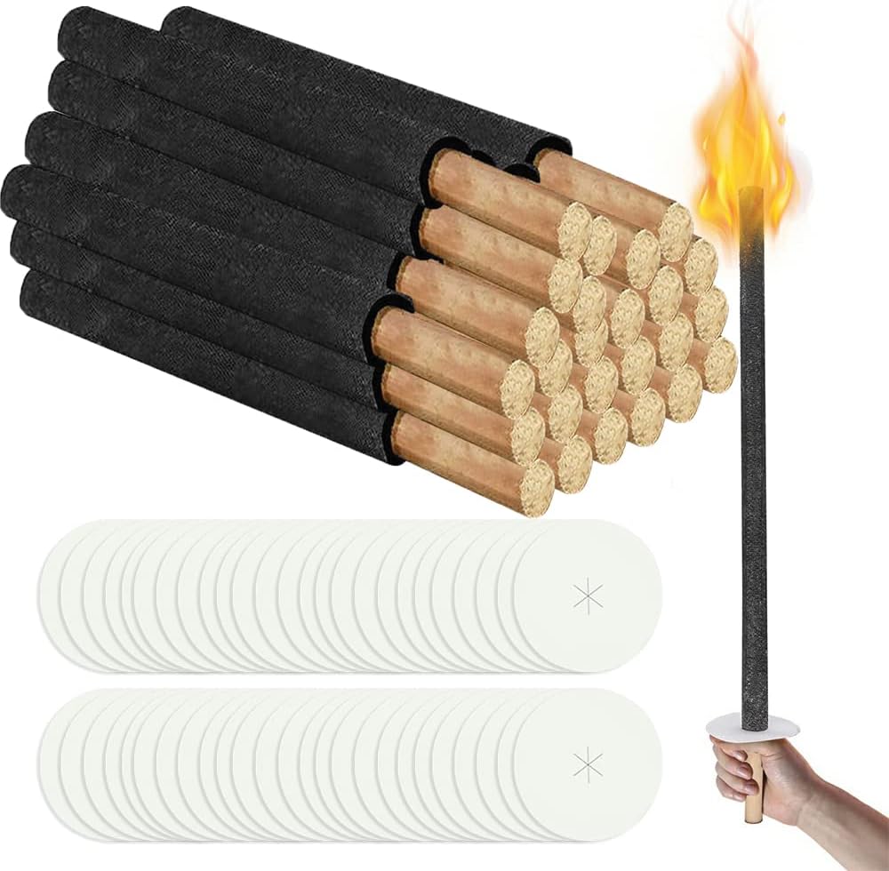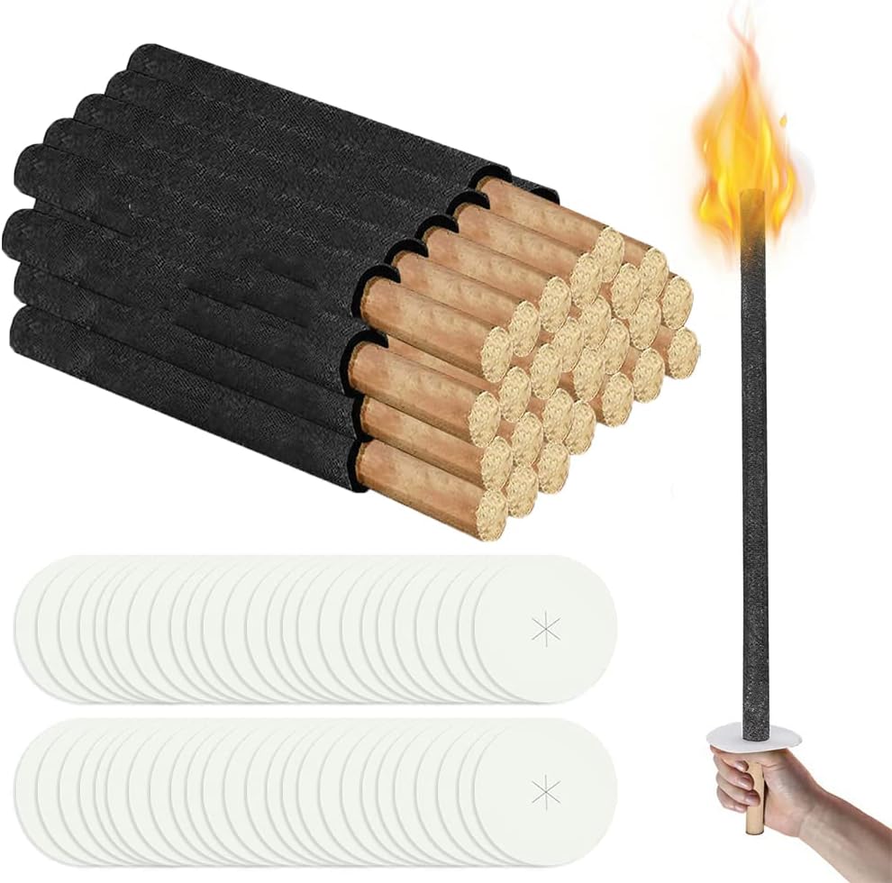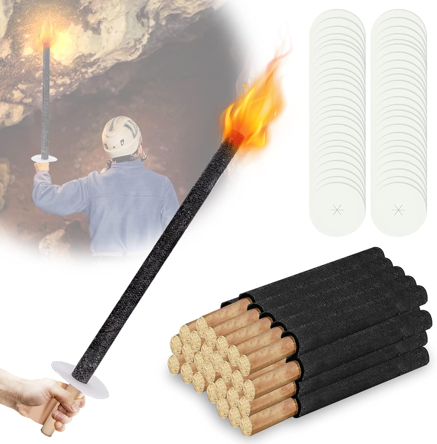 200 Stück Wachsfackeln Brennzeit 100 min, Gartenfackeln mit Handschutz, Fackel Feuerfackel mit Extra Langem Griff, für eine Wanderung mit Kindern, Lagerfeuer, Outdoor