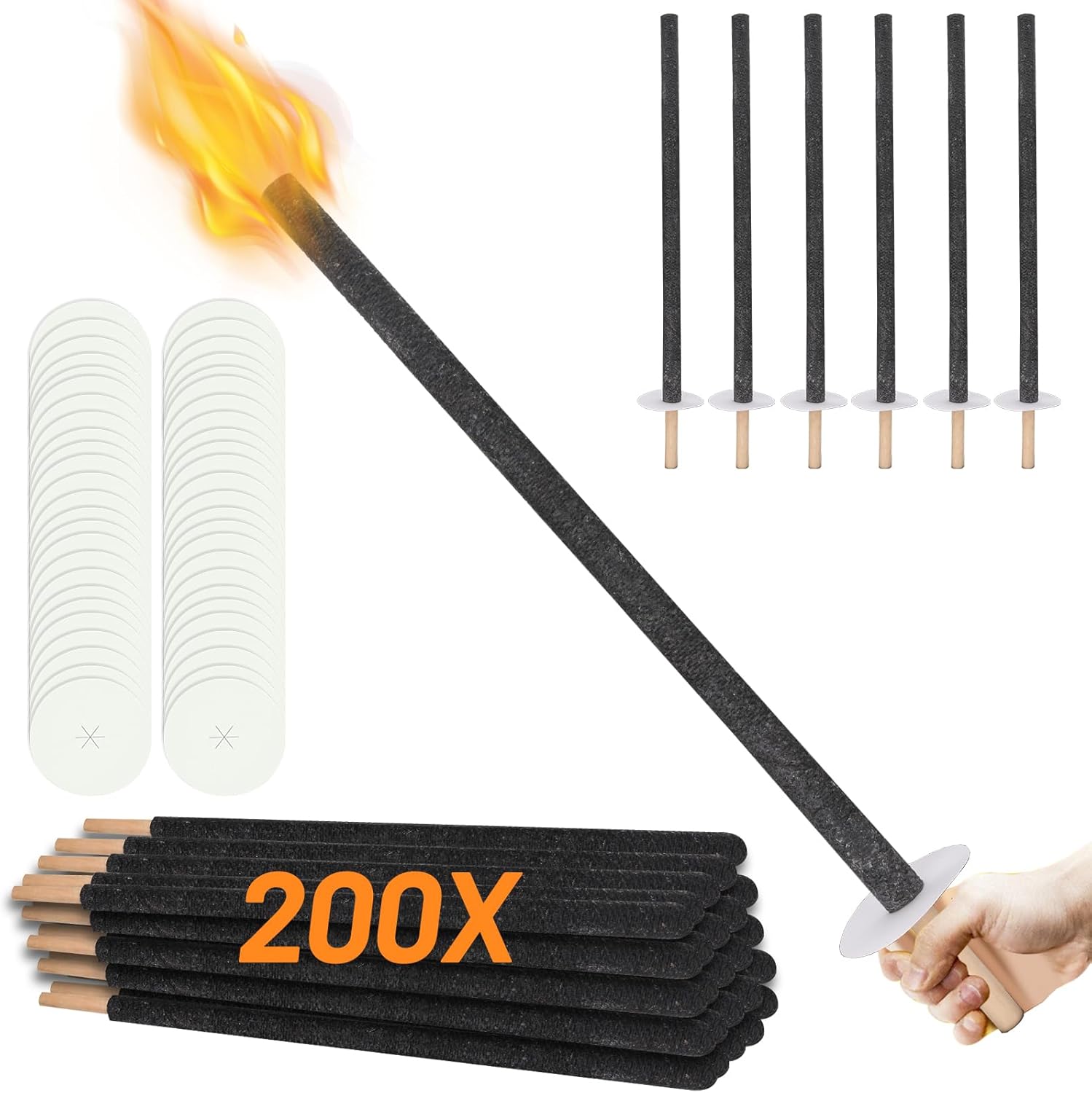 Fackeln 200 Stück Gartenfackeln für Draußen Brennzeit 45 min inkl. Handschutz mit Extra Langem Griff für Kinder Fackeln Nachtwanderung