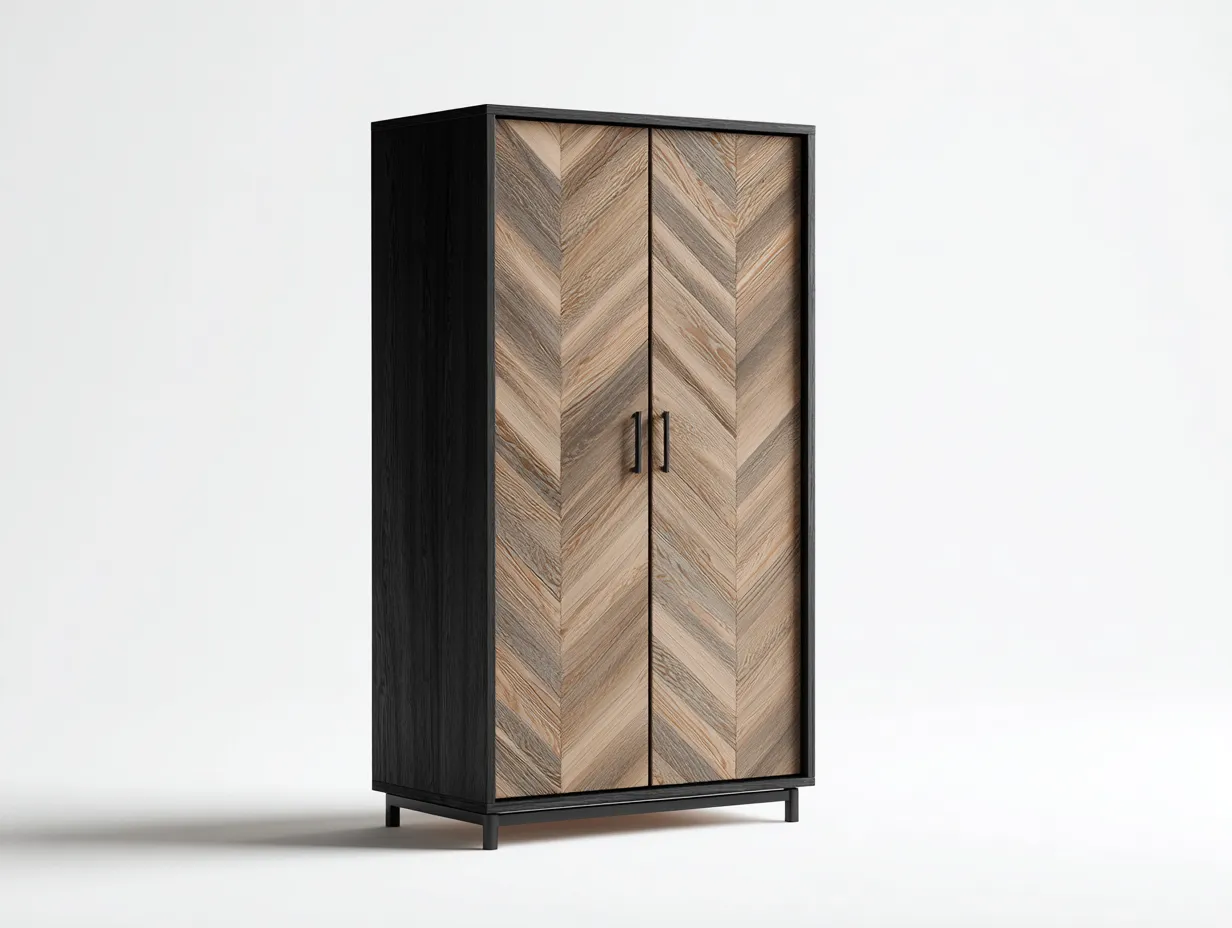 Zweitüriger Kleiderschrank-Holzwerkstoff-94x59x194 cm-Schwarz-Natur-moderner Stil98,78 €