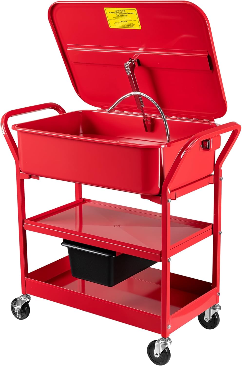 Wiltec Teilewaschgerät 75,7 l aus Stahl, Teilereiniger mit Pumpe, Teilewaschbecken mit Ablage, Teilewäscher rollbar für Werkstatt, Garage