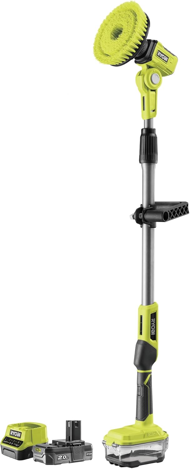 RYOBI 18 V ONE+ Akku-Reinigungsbürste R18TPS-120G, teleskopierbar, rotierender Bürstenkopf, 15 cm, inkl. 2,0 Ah Akku und Ladegerät