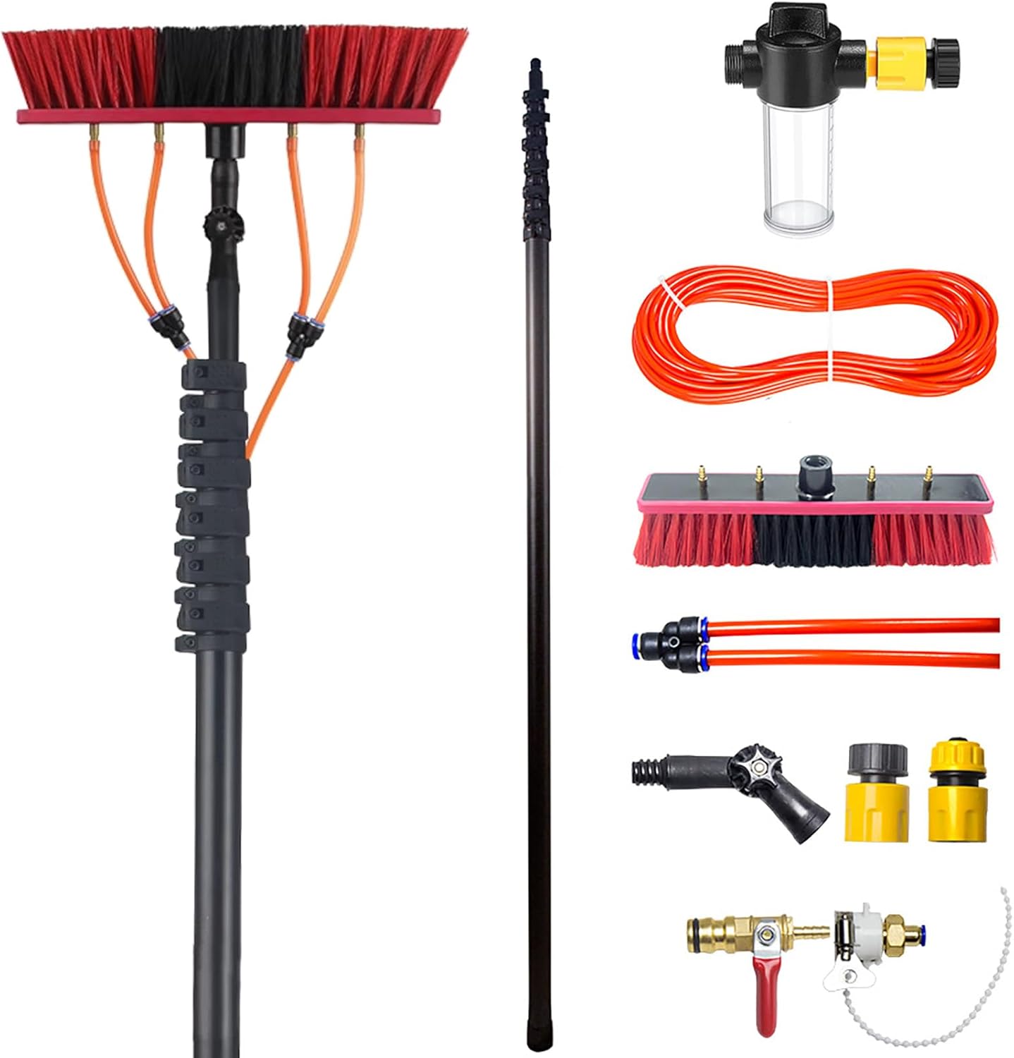 Teleskopbürste, Teleskopbürste aus Kohlefaser, ausziehbare Reinigungsstange mit Wasserzufuhr und einstellbarem Winkel(35cm Brush,18M)