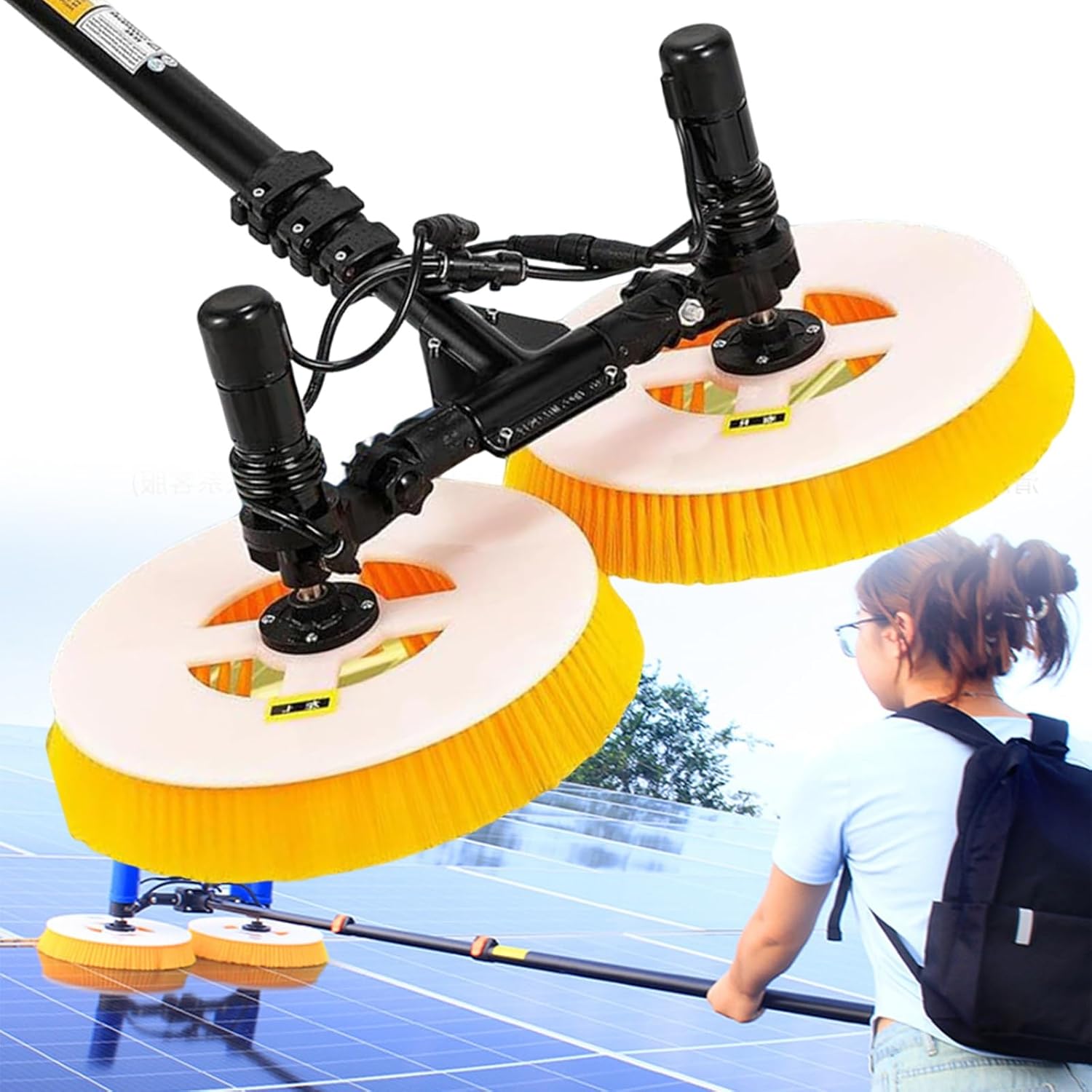 Professionelle Solar-reinigungsbürste für den Außenbereich, Teleskopstange PV -Panel Waschmaschine, Doppelkopf Solar Panel Reinigungsausrüstung Solarreiniger Roboter(Mains Electricity,7.5M)