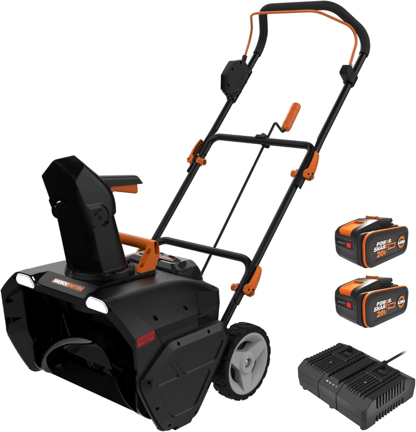 WORX WG471E Nitro Akku-Schneefräse 40V - Brushless Motor - 51cm Arbeitsbreite - bis zu 25cm Schneehöhe geeignet - 180° drehbare Auswurfkanal - 6m Wurfweite - LED-Licht - inkl. 2x4Ah Akkus und Ladegerät
