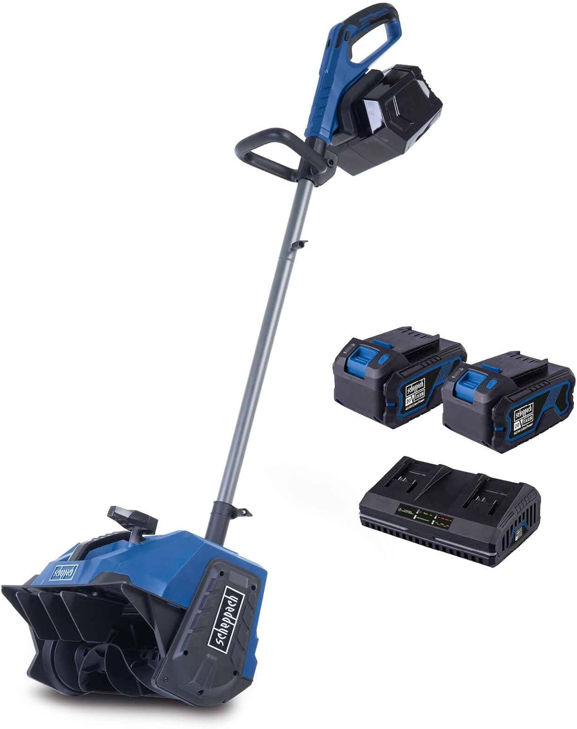 Scheppach Akku Schneefräse BC-SNB410-X Schneeräumer 40cm Arbeitsbreite 20cm Schneehöhe variable Auswurfrichtung 20V-IXES-Serie 10 Jahre Garantie mit 2x4Ah Akku und fastcharge Doppelladegerät