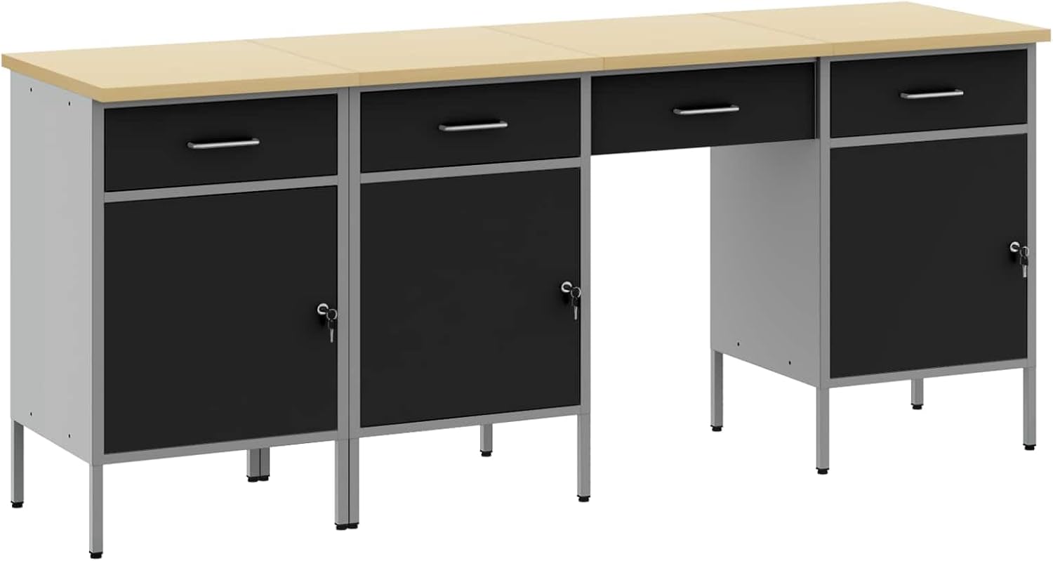 Moderner Werkstattschrank aus Holzwerkstoff und Stahl, 4-teilig in Schwarz, 200 x 55 x 85 cm, mit robustem Stahlrahmen für optimale Werkzeugaufbewahrung und vielseitigen