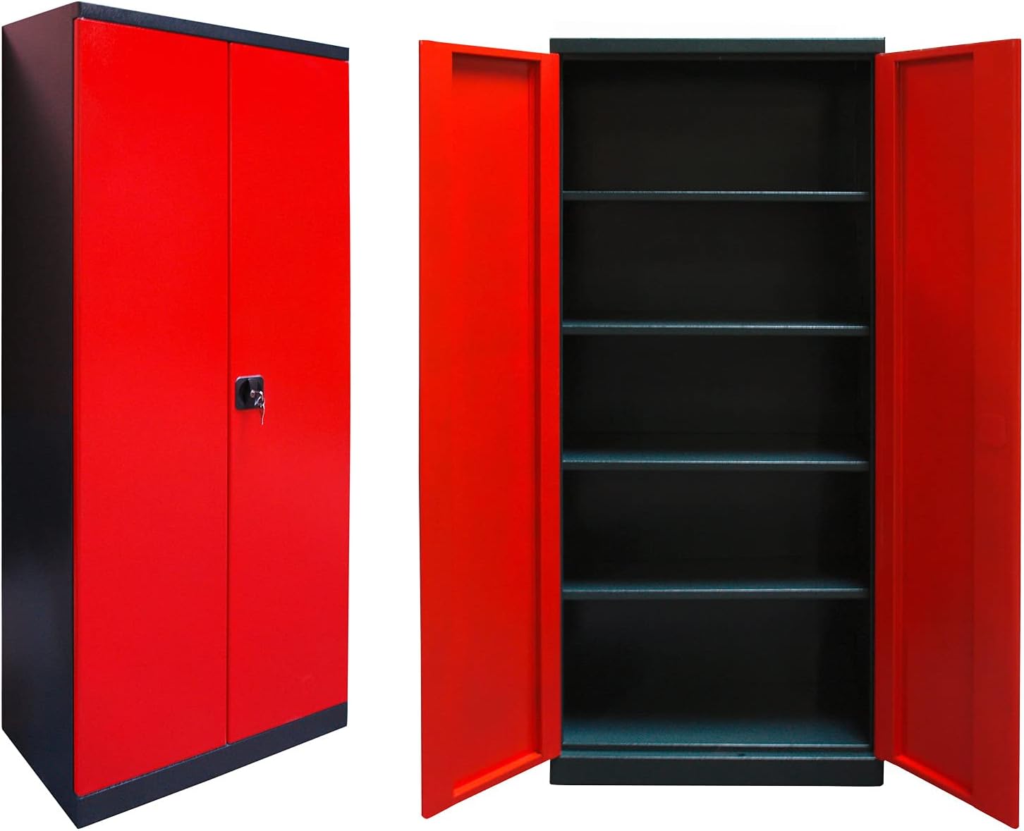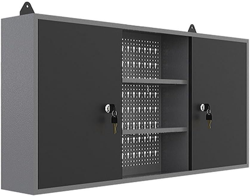JZD Wandschränke aus Metall mit 2 abschließbaren Türen, für Garagenwerkzeugaufbewahrung, Schwarz und Grau
