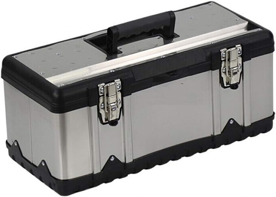Tragbarer Edelstahl-Werkzeugkasten, abschließbares freitragendes Design für sichere Werkzeugaufbewahrung und einfachen Transport, praktischer Tragegriff