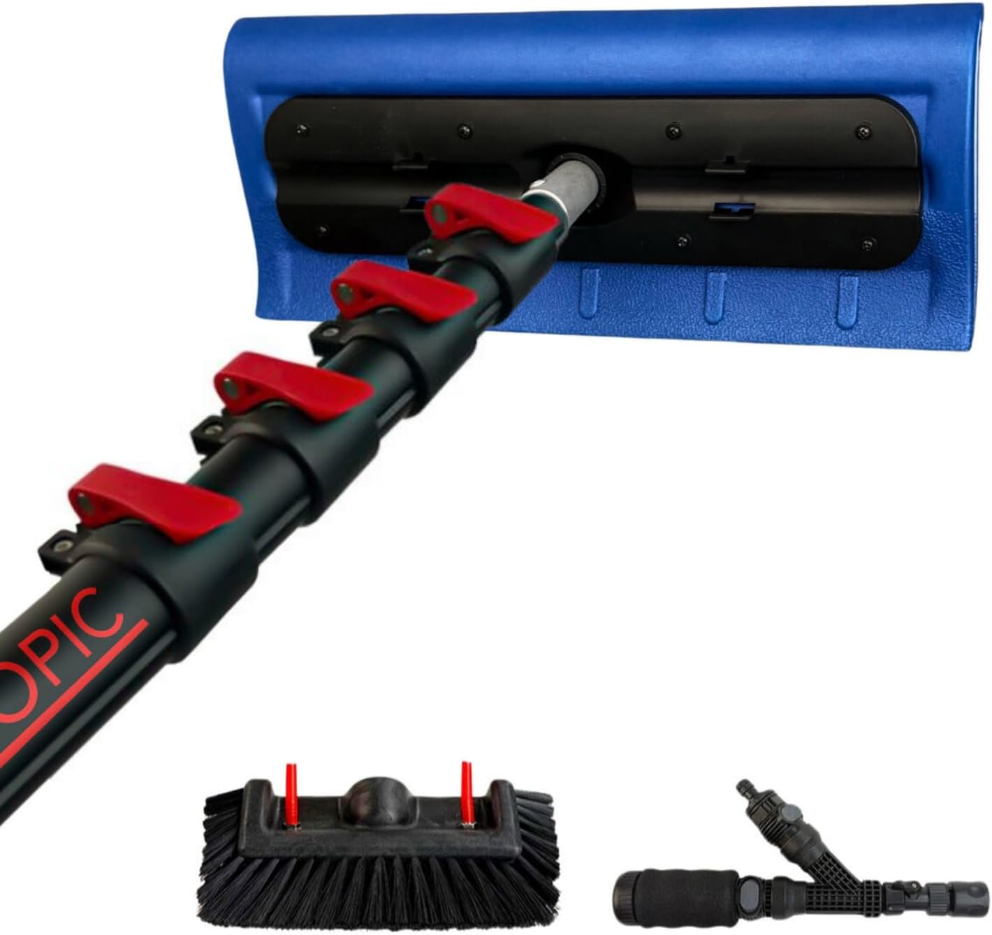 Aquascopic Aluminium Teleskopstange 9 m mit Schneeräumer und 5-Flächenbürste - Profi Set für sichere Schnee- und Schmutzentfernung auf Solaranlagen, Fenstern, Fassaden und Dächern