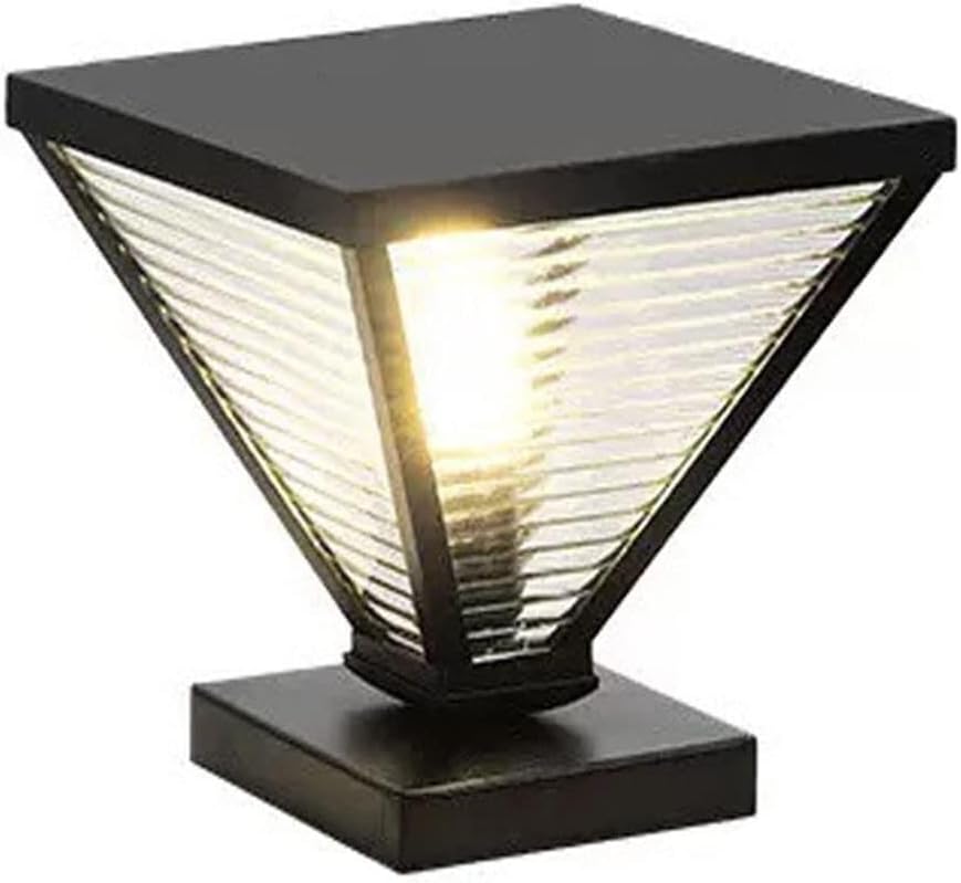 Aussen Pollerleuchte Dreieckige schwarze Säulenleuchte for den Außenbereich, moderne fest verdrahtete Säulenkappenbeleuchtung, IP55 wasserdichte Deckpfostenleuchte mit Glaslampenschirm(30cm/11.8in)