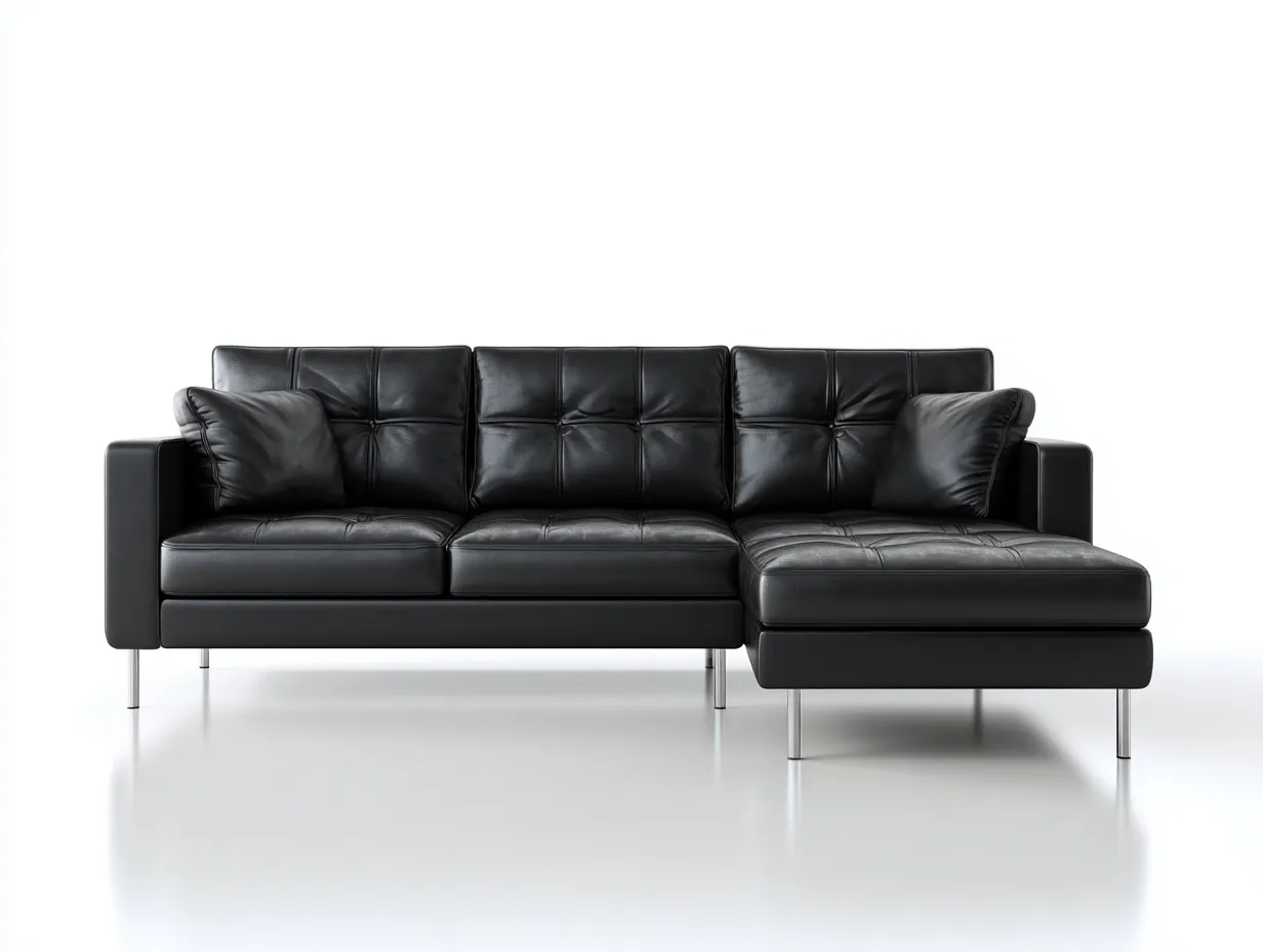 Der Bezug aus Leder in Schwarz verleiht dem Sofa eine elegante Ausstrahlung und eine glatte, pflegefreundliche Oberfläche. Das stabile Gestell gewährleistet eine sichere Standfestigkeit und unterstützt eine langlebige Nutzung.