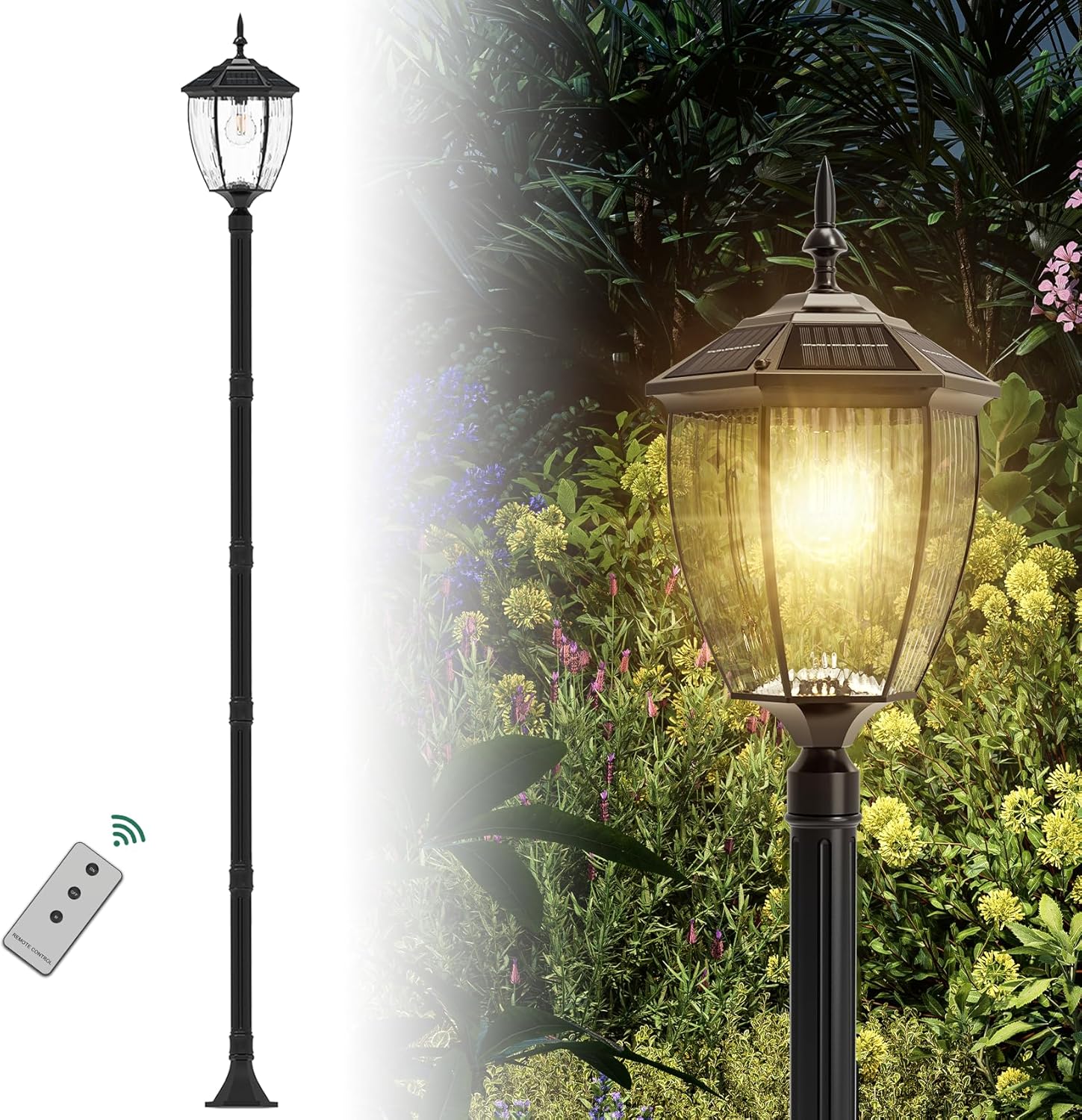 Kaqur 200,7 cm Solarlampe Pfostenleuchte, Dämmerung bis Morgendämmerung, wasserdicht, für den Außenbereich, 3000 K/4000 K/6000 K, Vintage, schwarz, solarbetriebene Säulenbeleuchtung für Garten