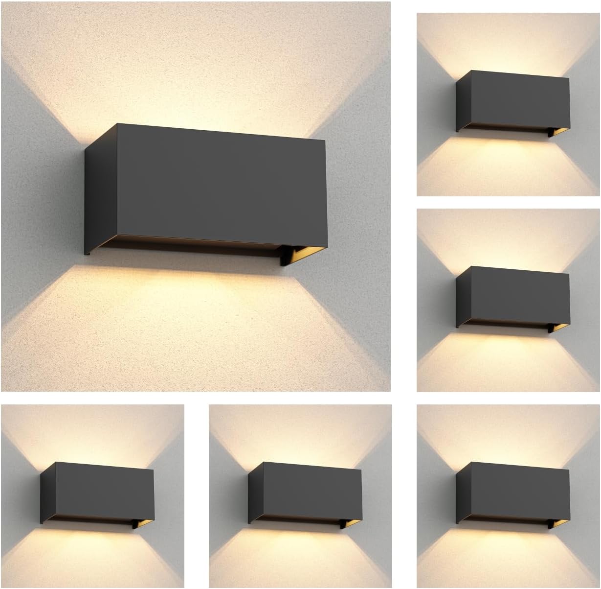 ledscom.de 6 Stück Wandleuchte CUBEL für außen, anthrazit, IP65, Up und Downlight, rechteckig, inkl. 2 LED Lampen, je 4,1 W, 501lm, warmweiß