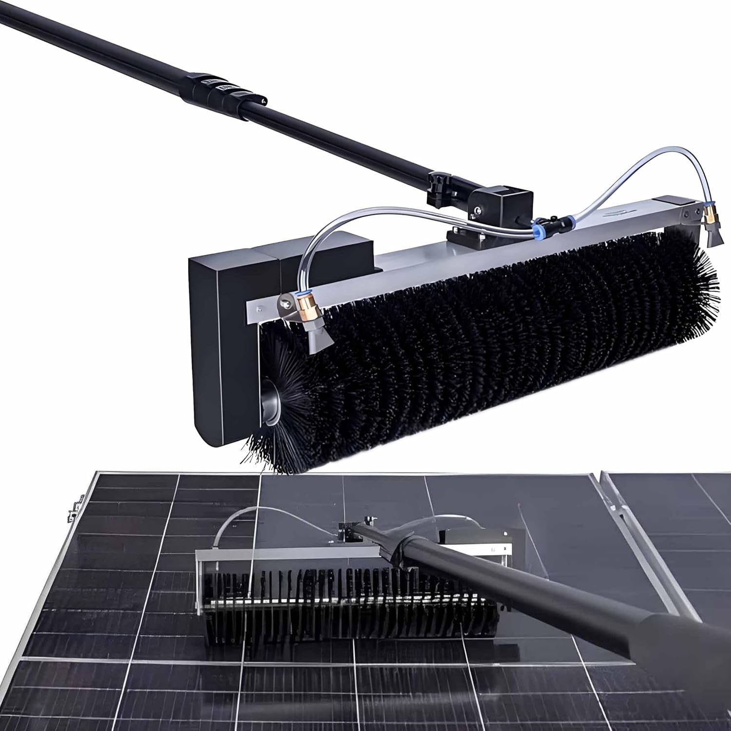 Solar Panel Cleaning Brush Telescopic,Automatische Wassersprühung,Verstellbarer Stiel,Reinigungshöhe:3,5 m / 5,5 m / 7,5 m,Handgehaltene Reinigungsrollbürste Battery-7.5m/24.6ft